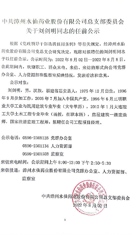 水仙藥業(yè)第一次公開競(jìng)聘中層管理崗位考試簡(jiǎn)訊